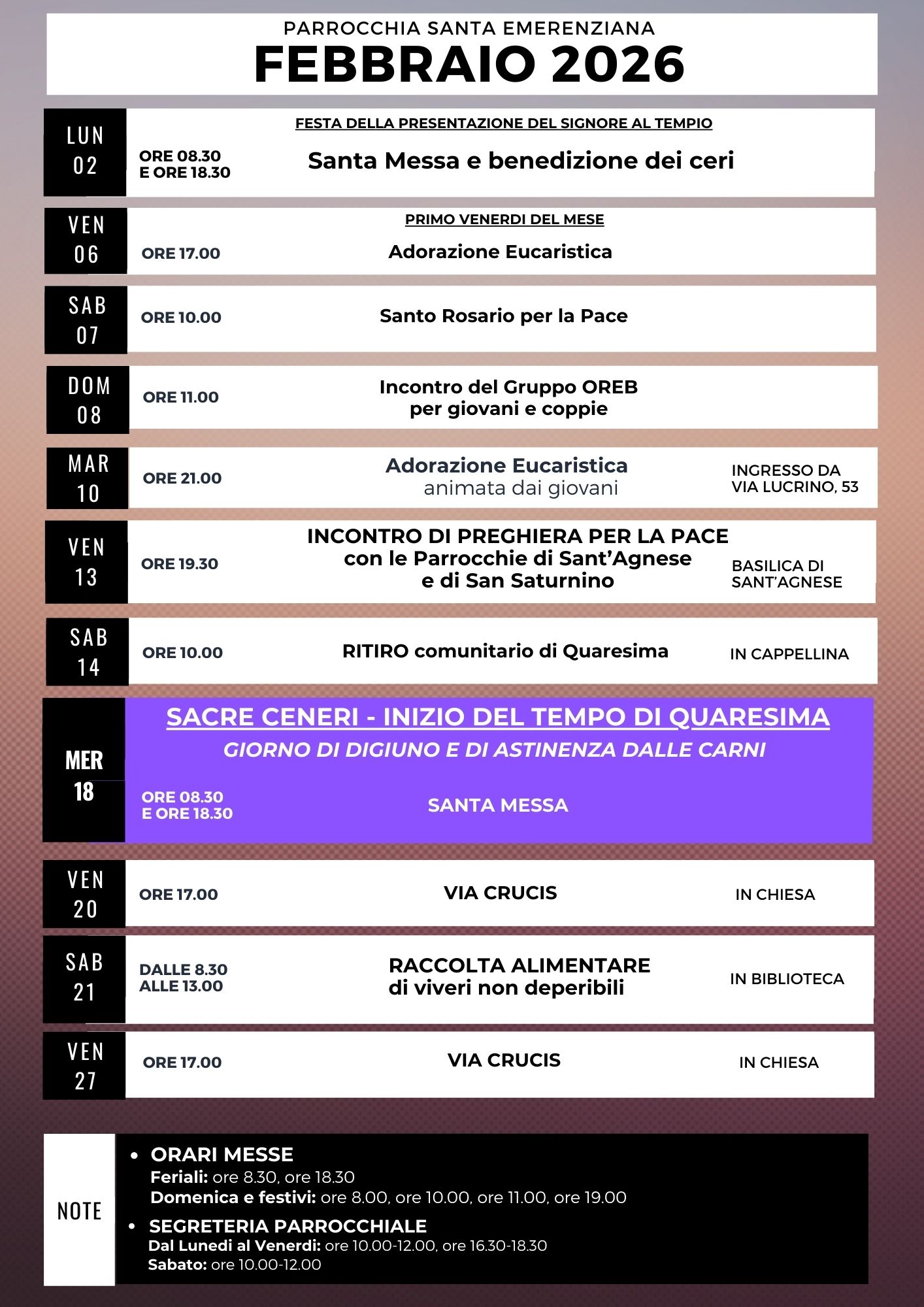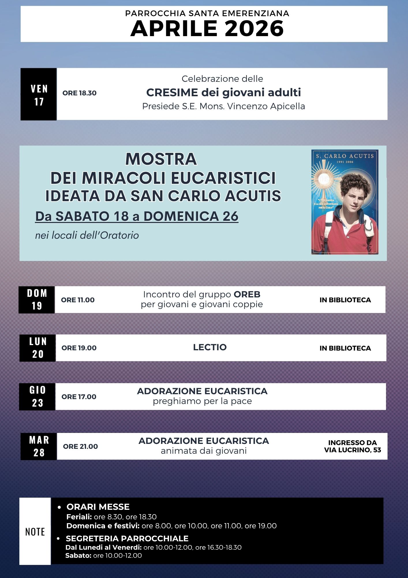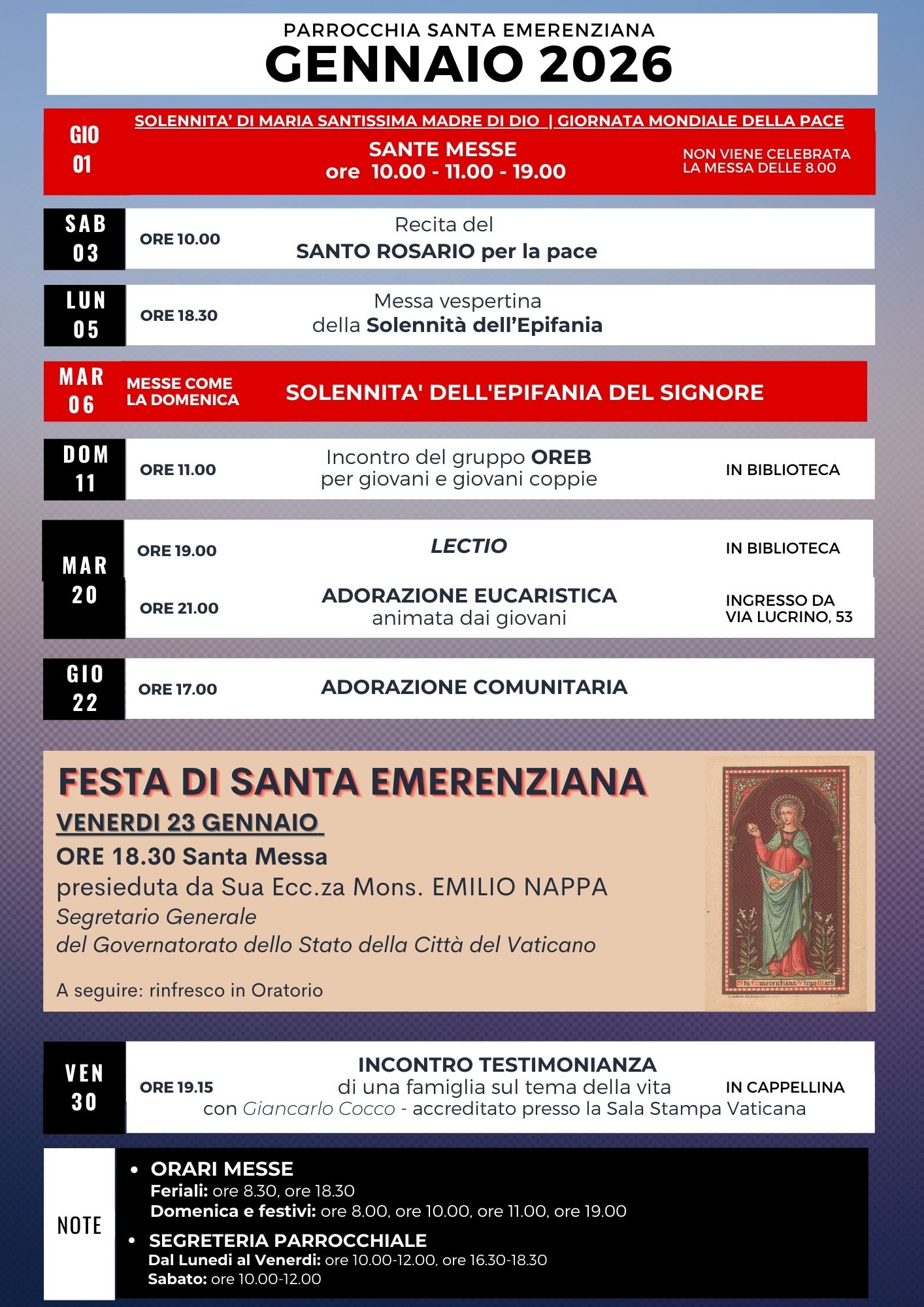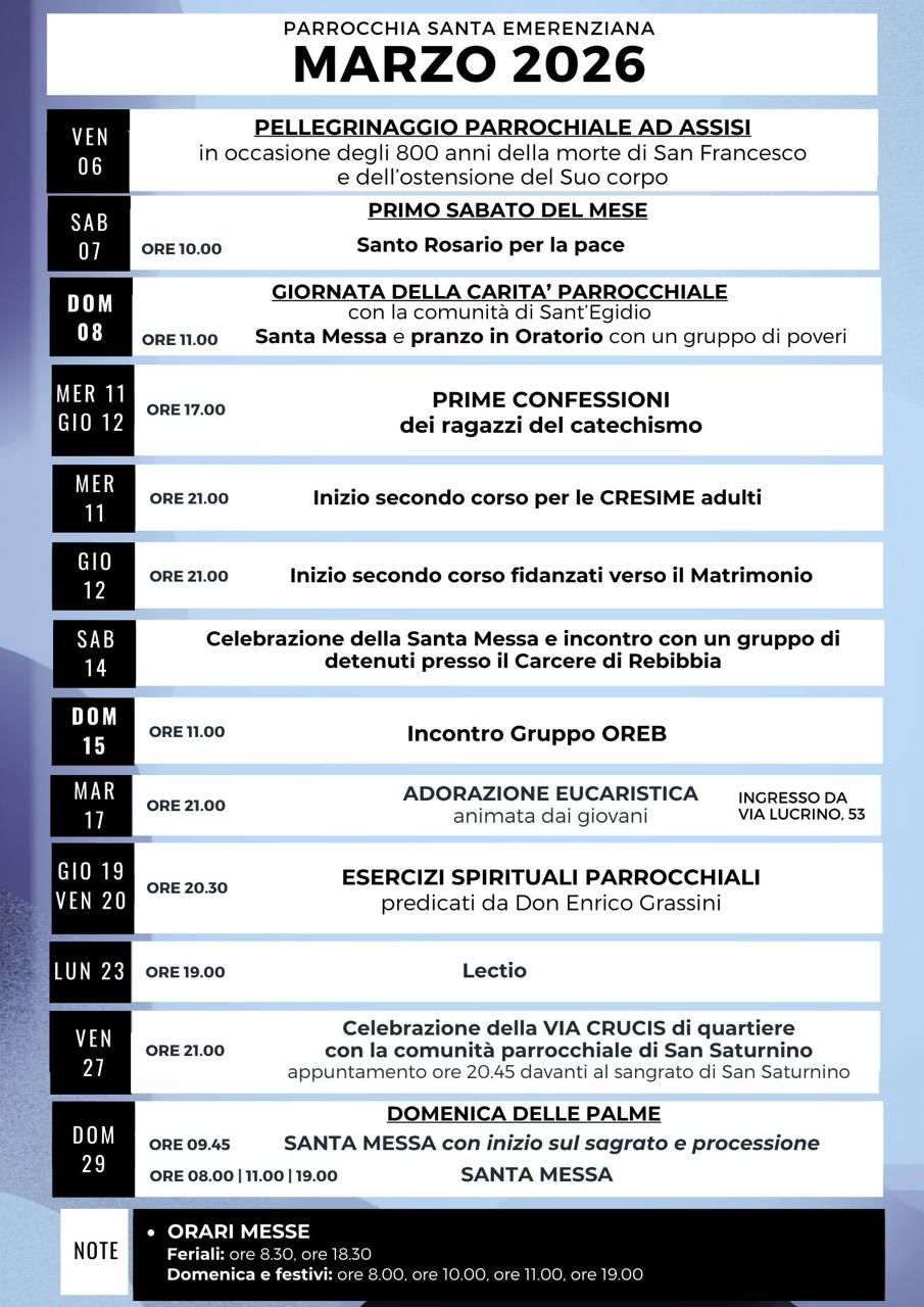 PARROCCHIA SANTA EMERENZIANA Via Lucrino, 53 ROMA Telefono e Fax 06 86 21 80 48 |